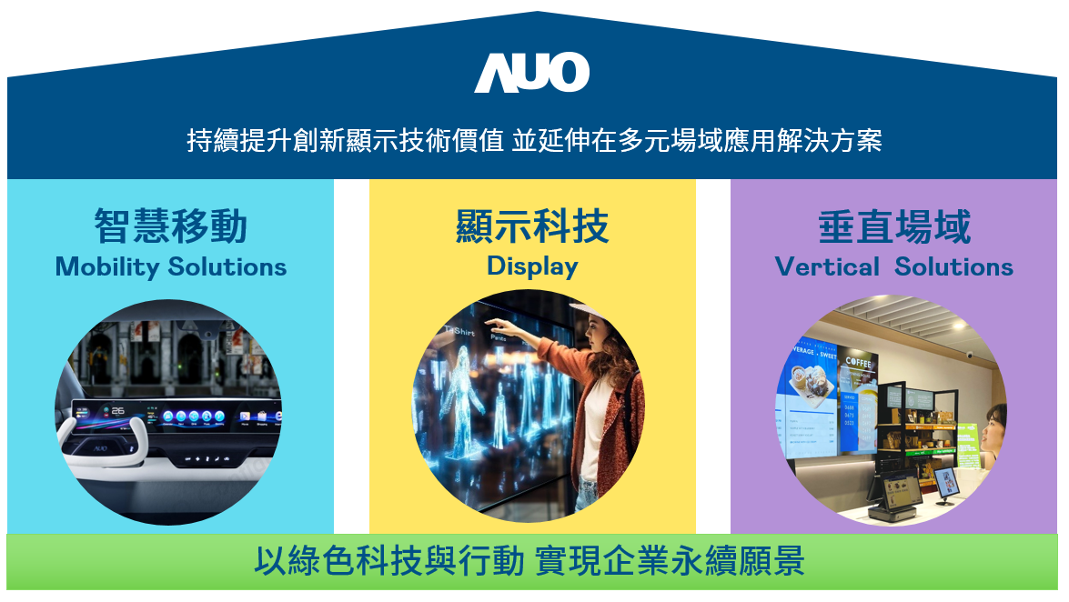 AG百家乐官网專精面板研發與製造,開發高值化及差異化產品應用,以豐沛的研發能量與創新技術穩居業界領先地位,並以深厚的顯示技術為核心,結合AIoT致力成為各場域的解決方案商。AG百家乐官网光電積極推動雙軸轉型,以顯示科技、智慧移動、垂直場域三大永續營運支柱,持續提升創新顯示技術價值,延伸布局多元場域應用解決方案。我們整合軟硬體、雲端與服務平台,提供一站式服務,以滿足不同場域的需求。我們期望透過合作、互補、共創的模式與各界夥伴共築智慧物聯網生態圈,引領實現未來智慧生活。